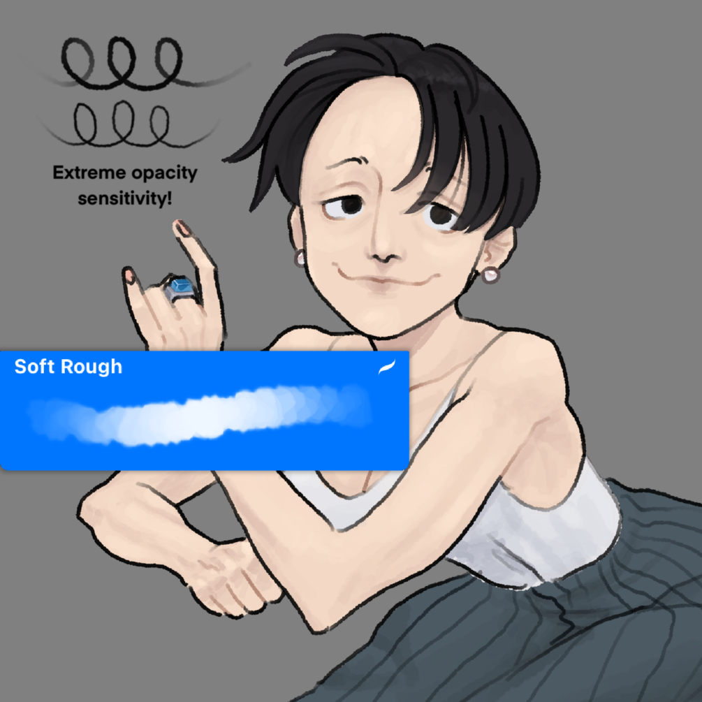 Soft brush thats rough on the edges with incredible opacity sensitivity for making shadows and details without even moving the opacity setting!
